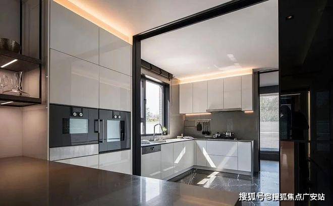 柜体隐形门,利用视觉上材质统一性,让空间不再片面化,通透明亮空间将精致的现代生活完美诠释。
