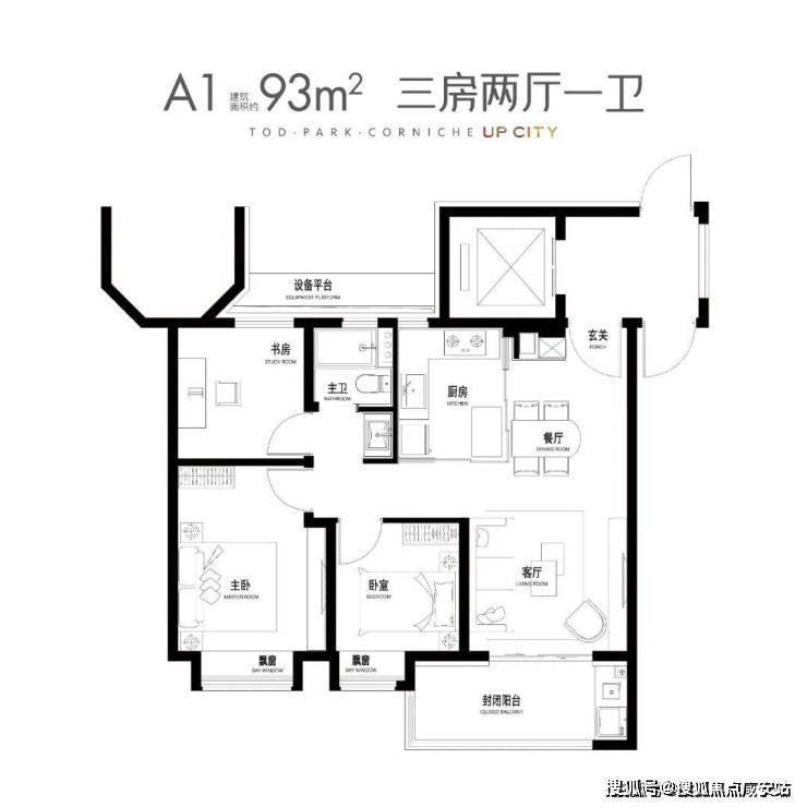 此外,项目还有建面约93㎡3房1卫和建面约102、103㎡3房2卫。