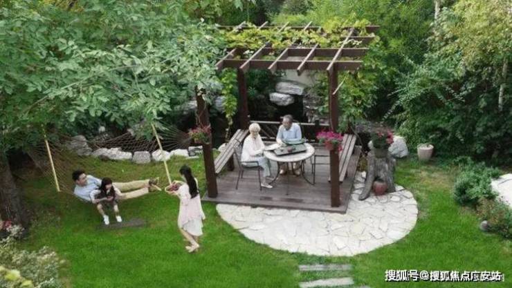 在庭院中喝茶聊天,生活紧密地融入自然,为小孩嬉戏游玩提供活动空间,家庭享受天伦提供理想场所。