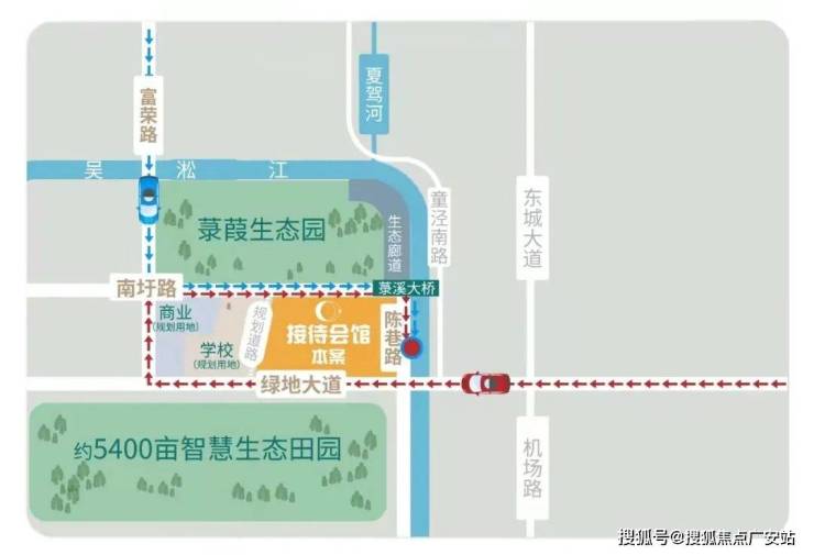 城市快速路:项目南靠绿城市快速路绿地大道,行车向东15分钟内横贯花桥可达上海绕城高速。