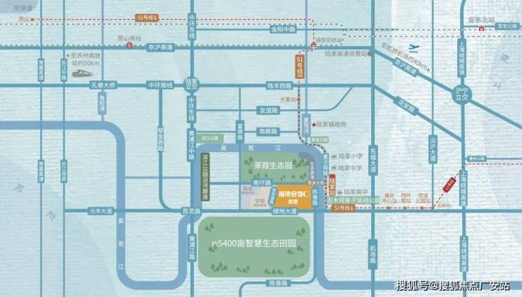 轨道交通:项目距离S1规划站点陆家站步行仅300余米,距离花桥地铁站4站,每站间隔1.3公里,平均3分钟一站,从花桥站行至陆家站大约10分钟,无论从通行时间和行政区域上,都极大缩短了陆家与花桥乃至与上海边缘县市的板块空间差距 。并且未来按照规划,S1 号线还会连接昆山K1号线,届时换乘高铁去全国各地、或前往上海大虹桥区域,出行都是极其便利的。真正做到“居住在陆家,工作在上海”。