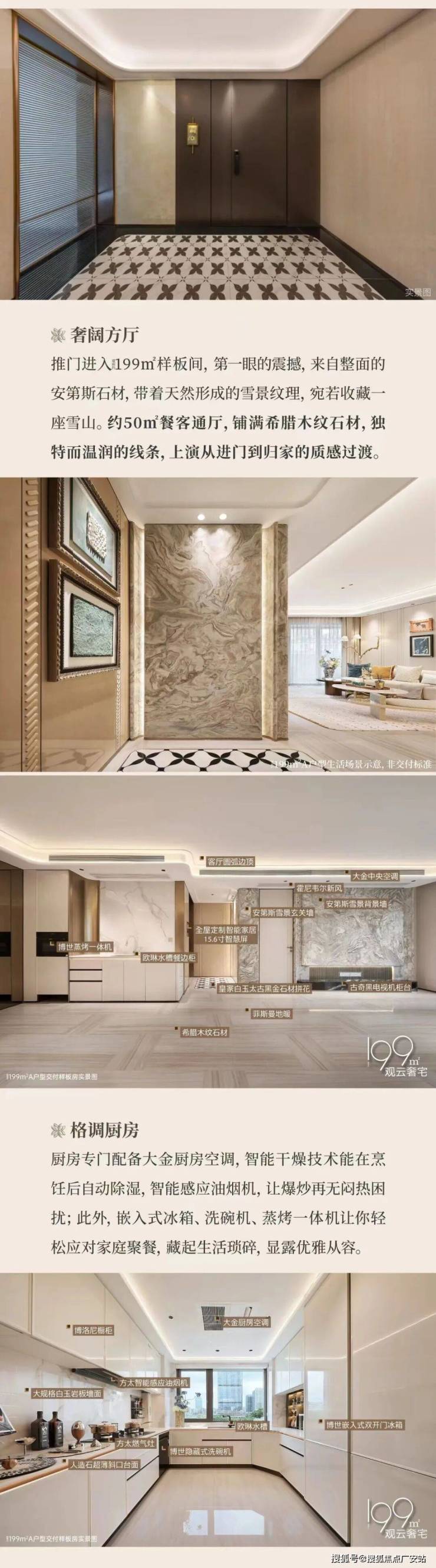 采用“王府中式”设计,大门为歇山顶形制(宽53米、高近11米),配黄铜狮、罗汉松及蓝翡翠奢石。园林融入西湖十景元素,如“花港观鱼”水景、“柳浪闻莺”绿植,并设雾森系统首层单元门厅石材铺就,肌理沉稳。建发英冠宸云售楼处电话:400-8657-114【预约看房热线】建发英冠宸云官方售楼处电话:4008657114【售楼处电话/地址】建发英冠宸云售楼处电话:400_8657_114【开发商认证】