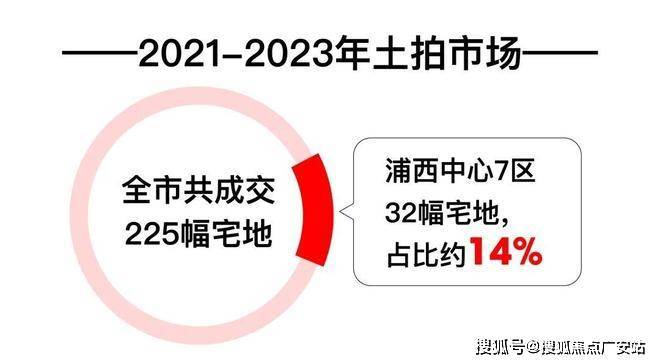2021-2023年上海土地市场,浦西7区共有32幅宅地成功拍出,仅占比约14%。