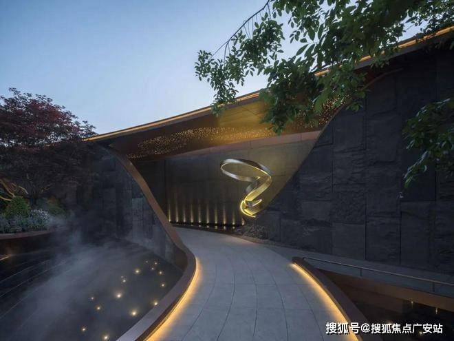 当波纹装置在超长界面上流转,光影与金属的碰撞如潮水轻吟,一场关于归家的仪式悄然开启。人车分流的静谧,精工石材的温润,艺术的波纹在夜色中泛起涟漪,仿佛天地初开时的一抹温柔,为每一位归者献上无声的礼遇。