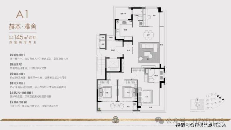 270°全明电梯厅、奢阔大四房南向双套房、中西结合两大餐饮中心、270°无边界艺术主卧、270°观景飘窗奢装艺术主卫、全屋精细化收纳,挚献杭州塔尖奢赏