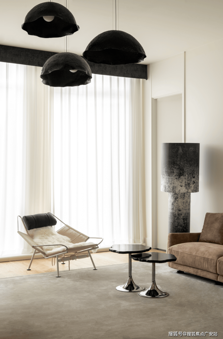 从材质方面,空间装饰十分丰富,留白和黑色的典雅作为核心,加入不同的金属、皮革和布艺,空间更加圆满,生活也随之更包容。