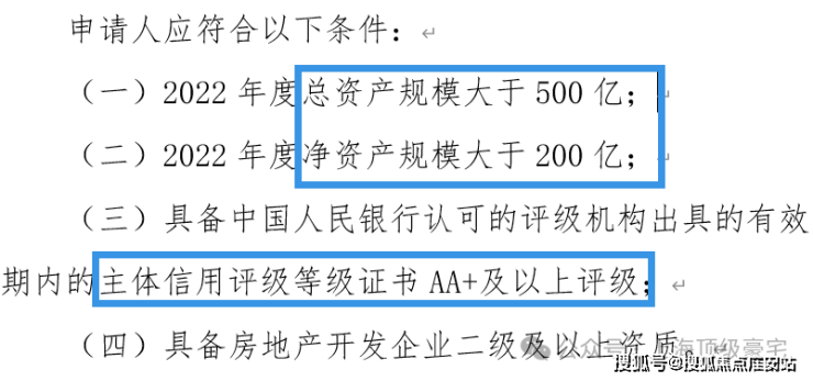在意向方遴选条件上,除了常规的对企业的总资产规模、净资产规模、主体信用,房地产开发资质等做了要求之外: