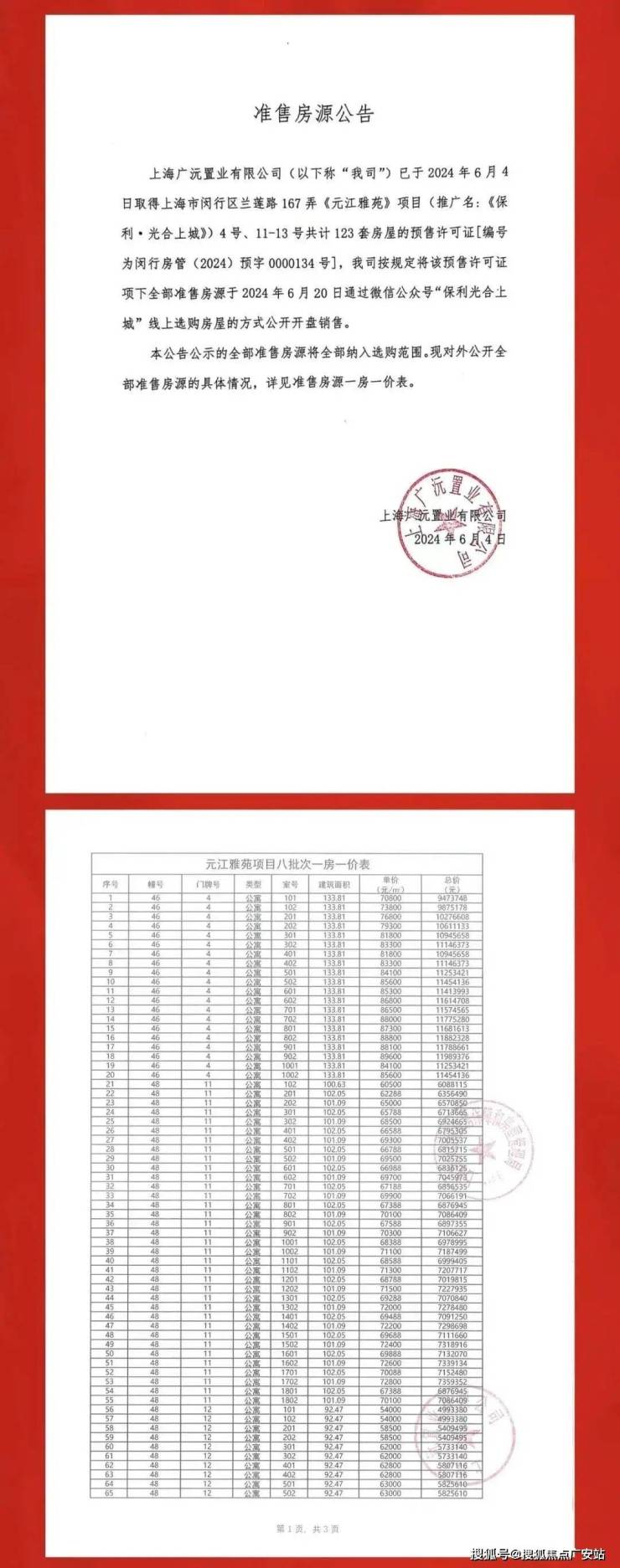 元江雅苑准售房源公告&一房一价表如下: