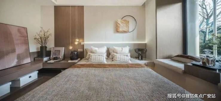 The design of the bedroom uses beige to increase the warmth of the space. On the one hand, it makes the space more livable. On the other hand, the furniture and space of the same color show a more advanced sense, making the space look more delicate. .