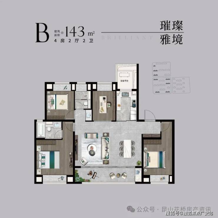 【光耀美景】南向约4.5开间,光影阔境,阳光相守风景无界【空间进阶】方正4房,四卧规制飘窗,丰盈生活美好【明亮宽阔】餐客厨一体,南向联通阳台,拓展巨厅轩朗空间【悠享品质】L型厨房,动线流畅,全家生活皆从容【奢华格调】主卧套房,独立卫浴/衣帽间,际会谧境人生