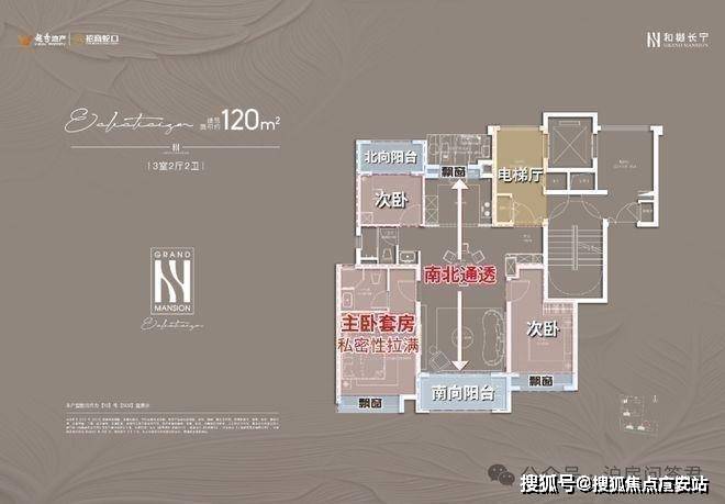 项目建面约120㎡户型也是类独立电梯厅的设计,室内则是标准的南北通透+三开间朝南设计;主卧套房配置,自带卫生间,私密性和舒适度俱佳。