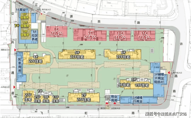 根据规划方案显示,项目将由6栋9-27层住宅+1栋8-14层保障房+4栋5F办公+部分商业以及配套用房组成。