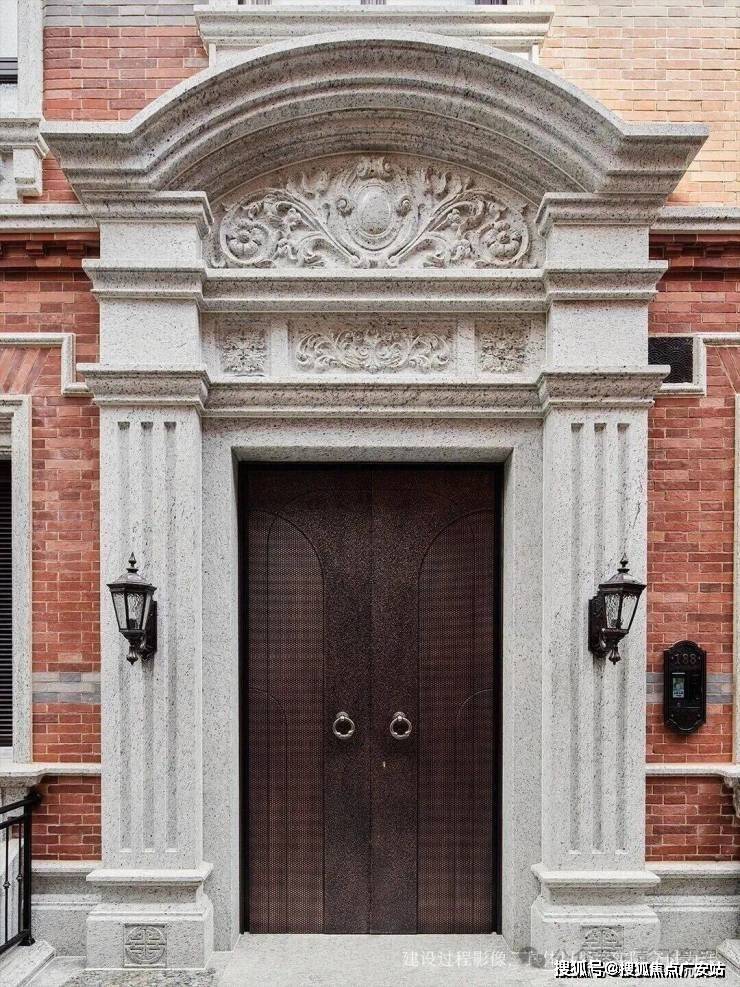 定制级山花造型,取材珍稀玫瑰金麻花岗岩,在坚硬的石面之上,勾勒出层层叠叠的雕花肌理;