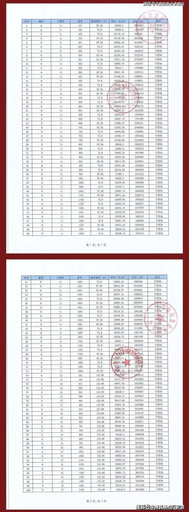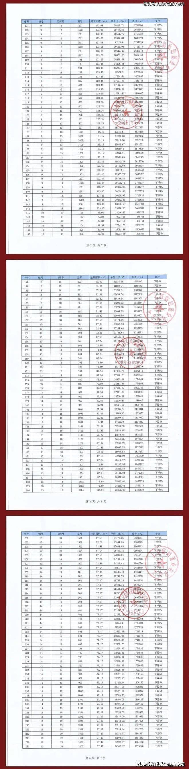 项目一房一价表