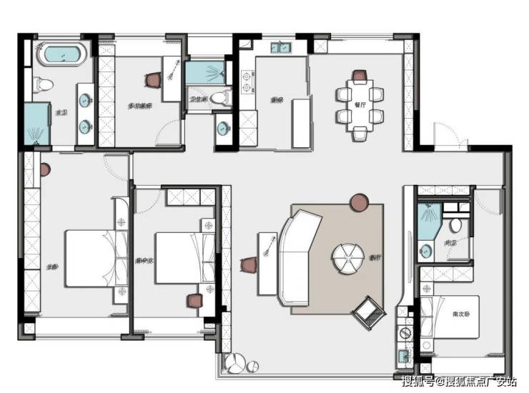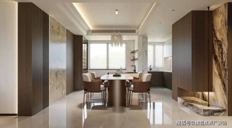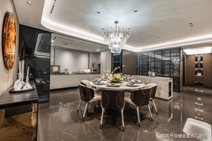 3、餐厅采用圆桌,围合聚拢氛围,更适配大平层社交基因;