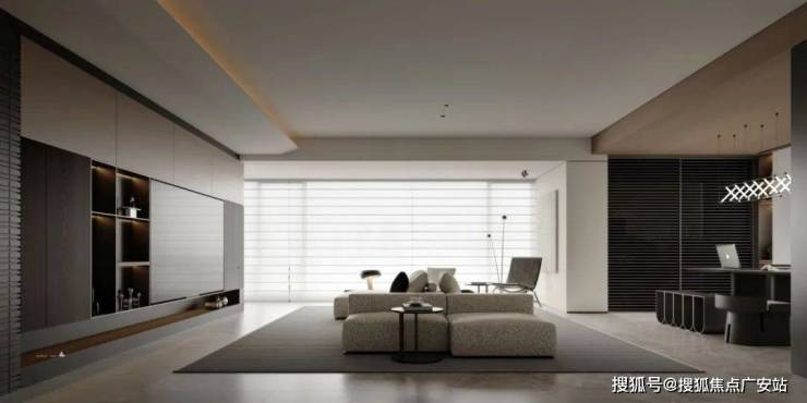 1、客厅采用会客厅+开放式书房布局,增强家庭互动,重塑社交中心,优化空间尺度,破解“空旷感;