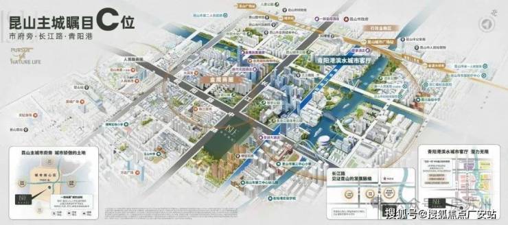 长江路/青阳路交会,地铁S1号线/京沪高速/昆山站/昆山汽车站纵横。