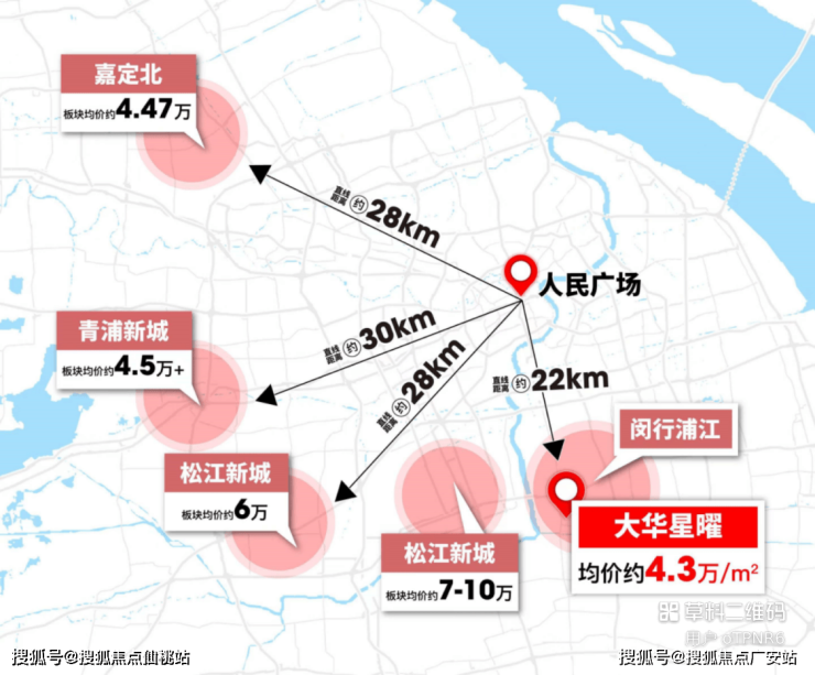 首先,地段方面。放眼整个闵行,4字头单价的新盘只有大华星曜。如果再把目光聚焦到五大新城,大家都知道近期要上市33个新盘,其中嘉定、青浦的楼盘普遍要卖到4.5万/㎡以上,松江新城的价格更是达到了6万均价。而从近些年的兑现能力,释放的势能看,闵行明显要强于嘉青松。而且从离市区的距离看,也是浦江更近。所以,这片区域不受限价影响的二手次新房,如今都已步入6万+的时代。