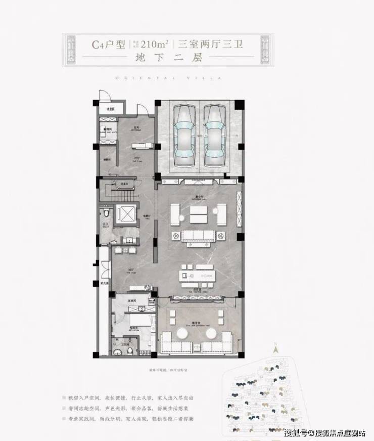 以项目东北角的建面约330㎡H户型为例,地下二层的室内可配置保姆房、