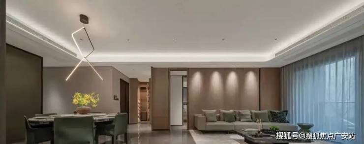 比如,室内采用无主灯设计,打造一种“见光不见灯”的舒适感。均匀的光线会让空间更有层次感,视觉更温馨;