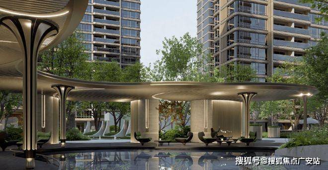 项目也采用当下豪宅新盘才运用的风雨连廊,打造风雨无阻的归家体验的同时,也连接着社区核心景观节点和功能空间,大大增加小区景观的空间体验。