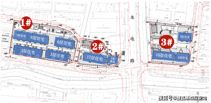 一期1#地块:规划有17、18层高层住宅,有5-8层的洋房,也有3层的别墅产品,水电路西侧还有部分商业。