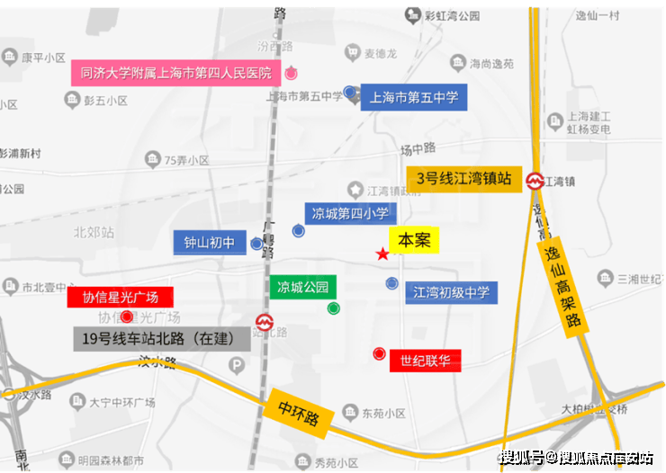 交通方面:项目距离3号线江湾镇站直线距离约900米。19号线(在建)车站北路站直线距离仅200m,将来出行十分便捷。自驾方面,周边有中环高架、南北高架、逸仙路高架等快速路。