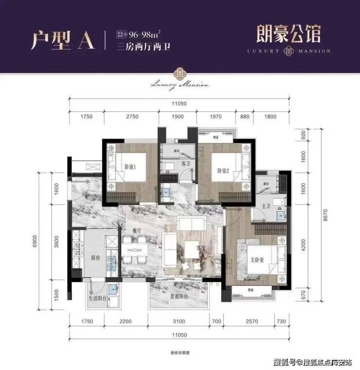 【项目建面约77-98平的3房】