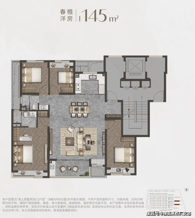 产品类型:涵盖精装花园洋房(建面约109-144㎡)、精装叠加别墅(建面约141-160㎡)和毛坯联排别墅(建面约157-202㎡)。