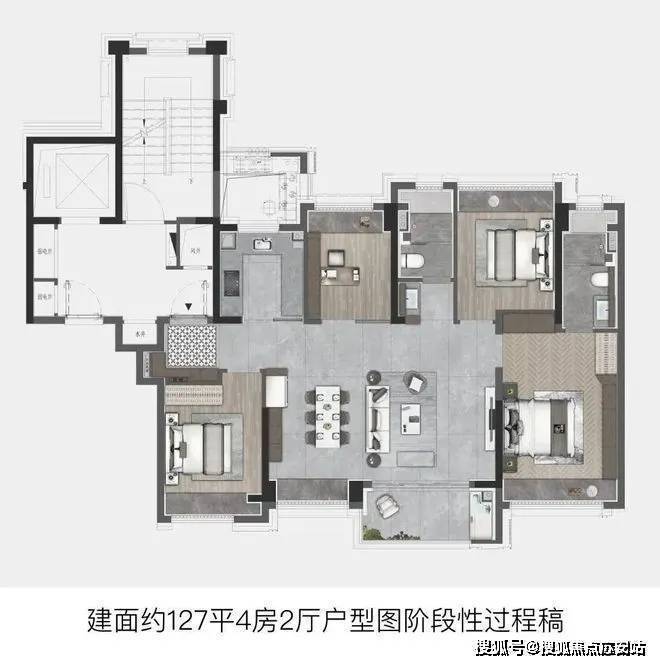建面约127㎡直接进阶4房,功能性拉满,适配当下越来越多的二胎或三代同堂家庭.