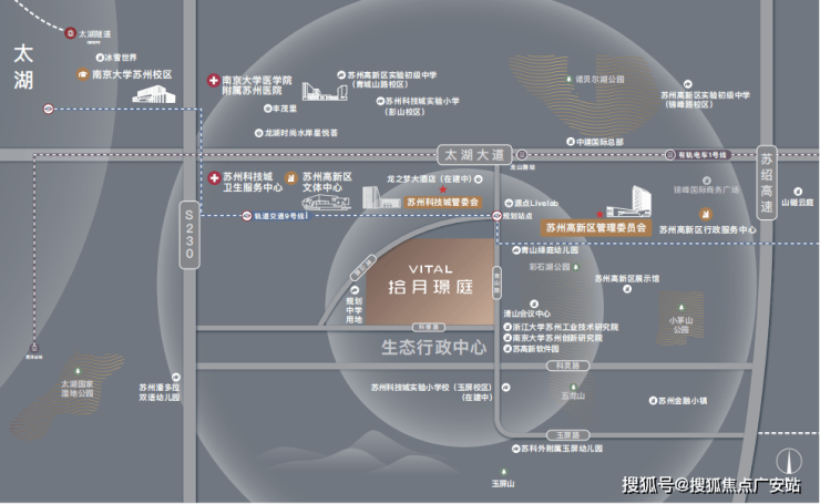 【多维度交通网络】畅享快捷出行,项目周边覆盖太湖大道、便捷的有轨电车1号线、苏台高速、S230省道等主干道,未来更将受益于规建中的轨交9号线,以及何山路西延、龙山路南延等重点工程,构建无界生活圈。