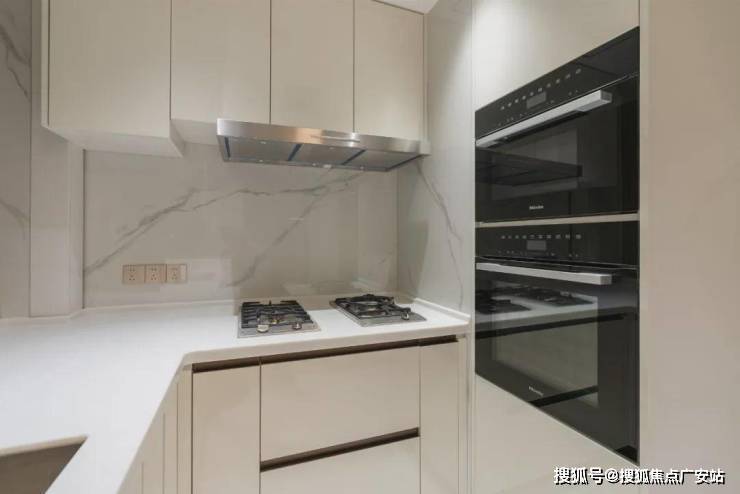 细节方面,项目采用了拉米娜的进口电视背景墙、顶级奢侈品牌卡莉斯塔的主卫龙头、ABB的智能化控制、LG的厨房台面,甚至是阳台的电动晾衣架、水槽、吊柜都是交付标准。