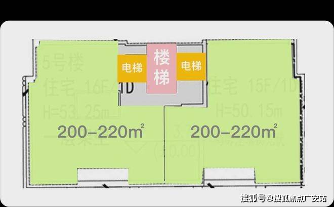 3号楼划分两个单元,每个单元都是2梯2户,预计为200-220m²4-5房户型和预计为240-260m²4-5房户型,大概率都为横厅四开间。