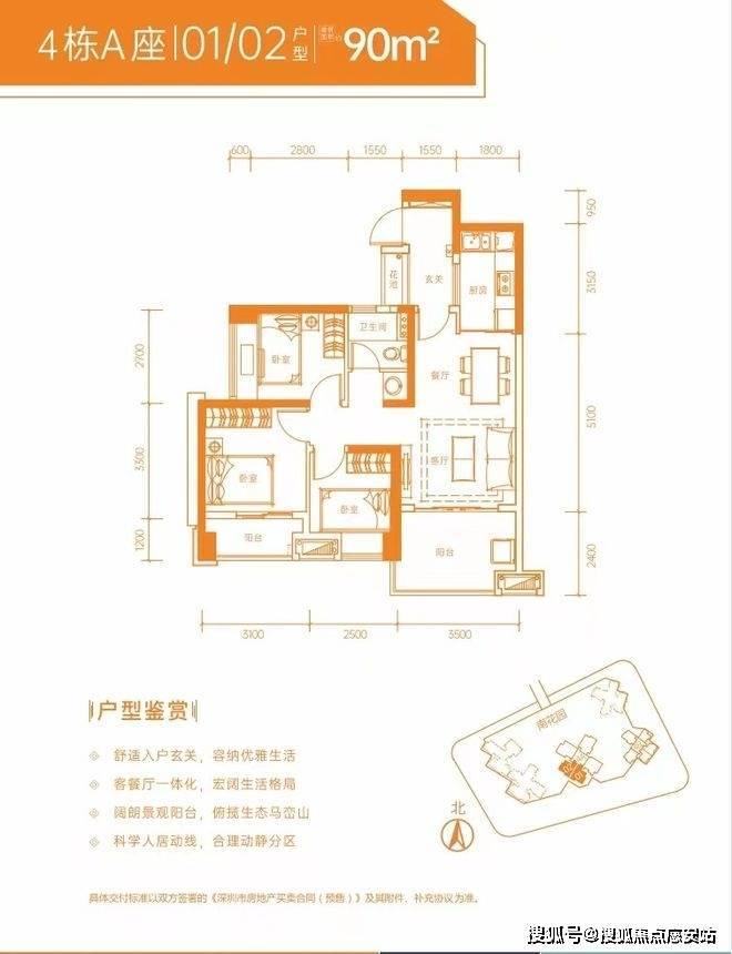 89-90㎡3房2厅2卫 总价318-355万 单价 3.5-3.9万