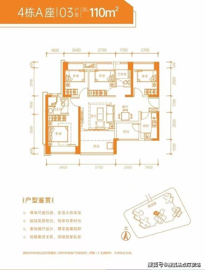 110㎡4房2厅2卫 总价405-450万单价3.68-4万