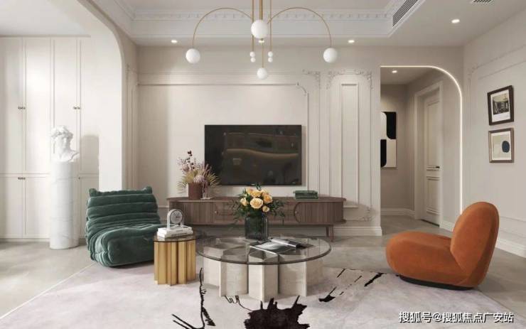 ①法式风线条感强,常用石膏线、护墙板来装饰。