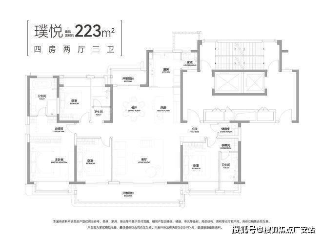 223㎡四居:总价1100-1200万,分布于9#楼,大户型产品