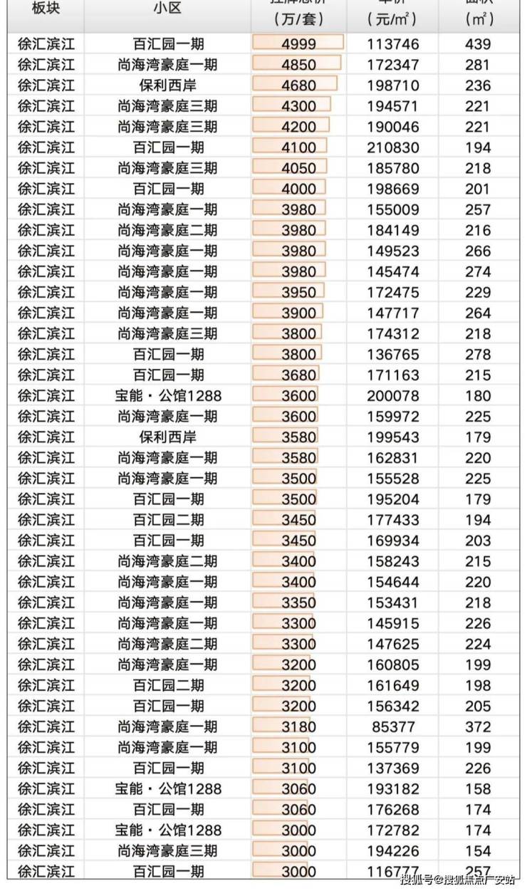 首先来看徐汇滨江总价5000万起二手豪宅市场(数据来源链家)。