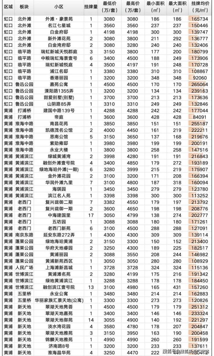在上述老牌豪宅区&新贵板块的基础上,增加了如北外滩、瑞虹新城、长风、大宁、老西门、真如、新江湾城、世博滨江等热门地段。