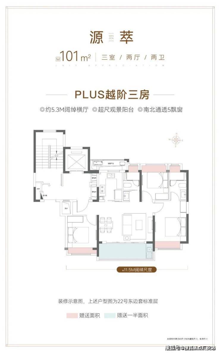 经典飞机户型+三开间朝南+餐客厨一体化+约5.3m的阔绰横厅,整体南向面宽达到约11.5m!整个户型的通透度和采光度很棒。