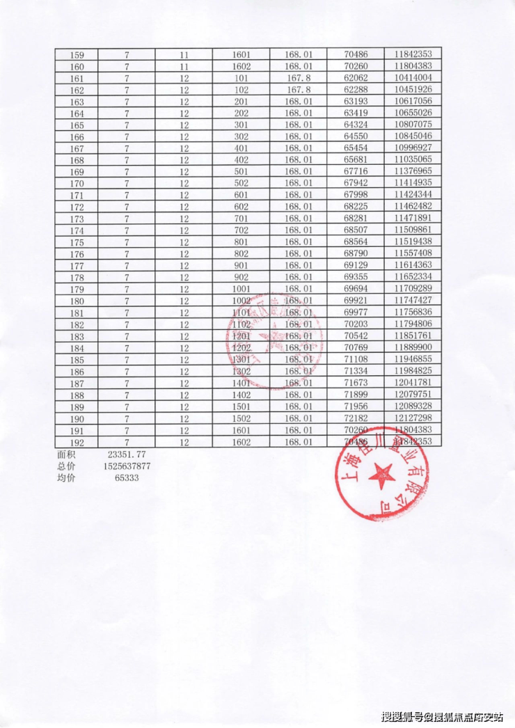 项目一房一价表▼