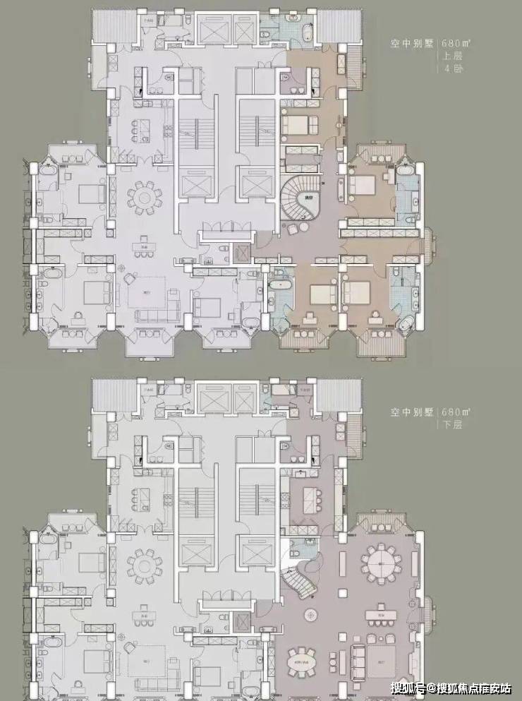 住宅部分全部大平层(复式)设计,单套面积约370-1500㎡,全部精装交付。