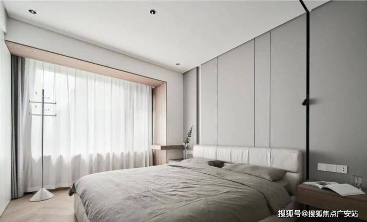 ▲ 主卧延续灰白色为基调,加入少许木色点缀,简单耐看且舒适