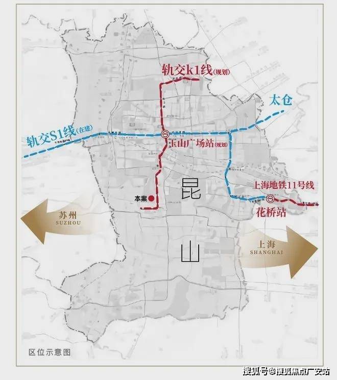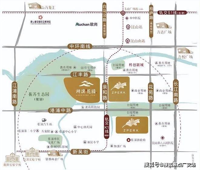 2、K1(规划)+S1(在建)快速联动长三角,邻张浦城市主干道亲和路,纵贯昆山南北;