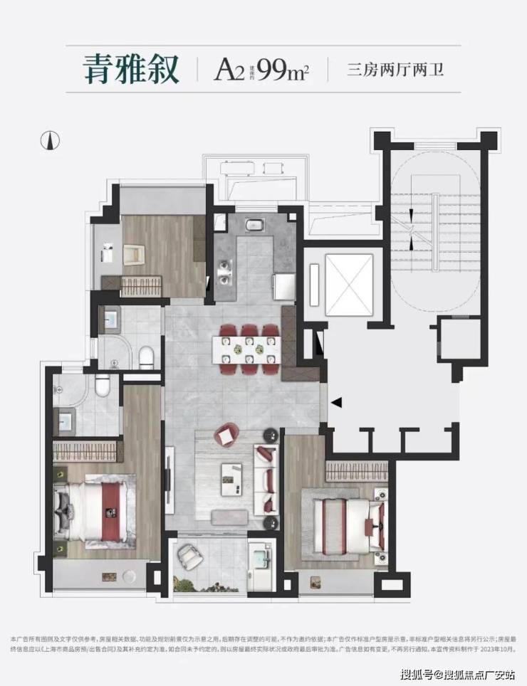 建面约99㎡三房两厅两卫