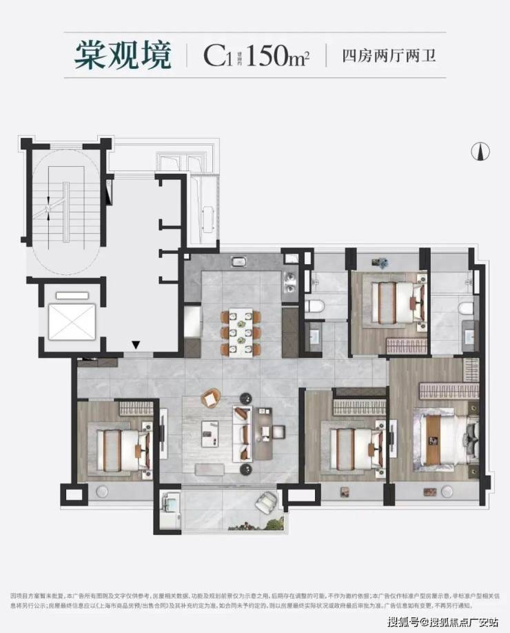 建面约150㎡四房两厅两卫