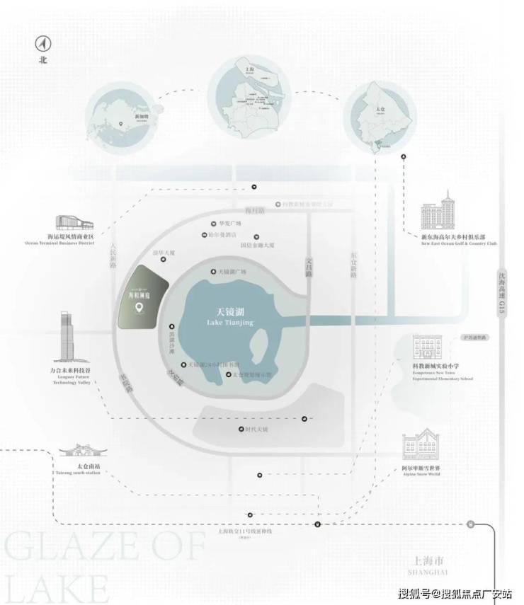 海和澜庭,位于苏州市太仓科教新城片区,发展接近成熟,确立“城市副中心”的板块地位,周边配套齐全、交通便捷;临近太仓天镜湖、浏河,生态环境优美。东侧建筑紧邻天镜湖,西侧高处可远观湖景。作为“活力生态都心”,我们希望这是一栋集合了未来、艺术、空间三大要素的生活艺术馆。