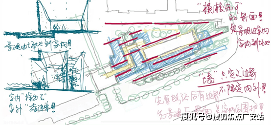 空间遍布水景,模糊室内外的界限,嵌套琉璃盒子,打造江南园林的“空间转合”。