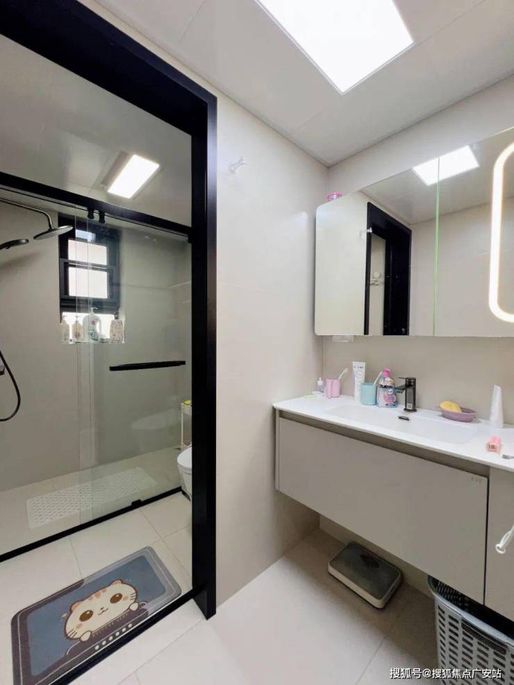 白色调卫生间配合干湿分离设计,是融合美学、实用与健康的空间优解。白色使光线反射率提升至92%,5㎡卫生间获得8㎡的空间错觉;干湿分离实现高峰期双人同步使用,并保护干区材质及家具。好设计,从解决最基础的不适开始。