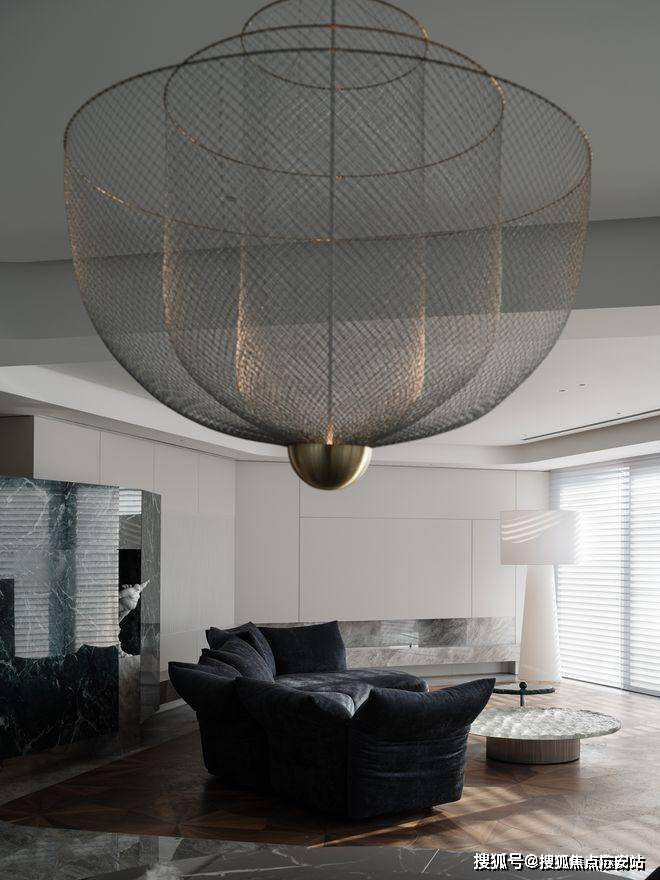 上海静安翡丽铂悦售楼处电话➡:400-8657-114(售楼中心电话)静安翡丽铂悦官方电话➡:400-8657-114(预约看房电话)借以Moooi的枝形吊灯向整个开放区域投放出细腻的美感,即便是金属质地却丝毫没有硬朗的质感,光线通过铁丝网散射,营造出温馨而梦幻的氛围。